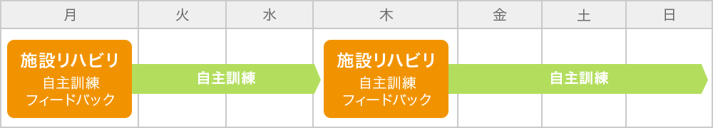 週に2回の施設リハビリは、鍼灸の施術1時間、理学療法士または作業療法士のリハビリ1時間の合計2時間です。